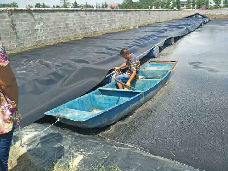 我們都知道污水池專用防滲漏土工膜施工起來還是有些難度,也有些我們需要注意的東西,所以我們接下就來總結一下施工的一些要點,希望可以幫到大家。池內暗溝、滲溝開挖后必須疏干池內積水,平整池底及池璧,清理尖石、樹根等雜物,避免刺破、損傷土工膜及土工織物。防滲漏土工膜鋪設應平順、松緊適度,并與池璧被保護基體貼緊,不得有褶皺.破損時應及時修補、修補面積不小于破損面積的3倍。反濾層土工織物的搭接寬度不宜小于15cm.防滲漏土工膜或其它防滲材料宜用粘接法,其強度不低于材料設計強度,粘接寬度不應小于10cm.連接面處不得夾有砂石等雜物。池溝和檔土墻后的滲水管應按設計位置鋪設并固定.檔土墻后斜向于與縱向管接口可來用“T"形接頭,滲水管接口應牢固,不易松動,避免土、碎石等落入管中。塑料滲水管外的土工織物應包裹綁扎扣牢固,不應脫落、皺褶,回填碎石等填料時,應采取措施避免土工織物或滲水管受到損傷。